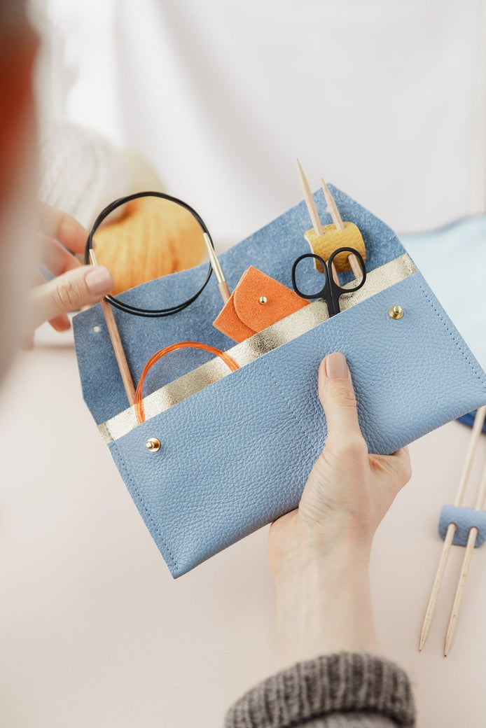 Studio Lowen Leather Stitch Markers Pouch - Metallic Navy